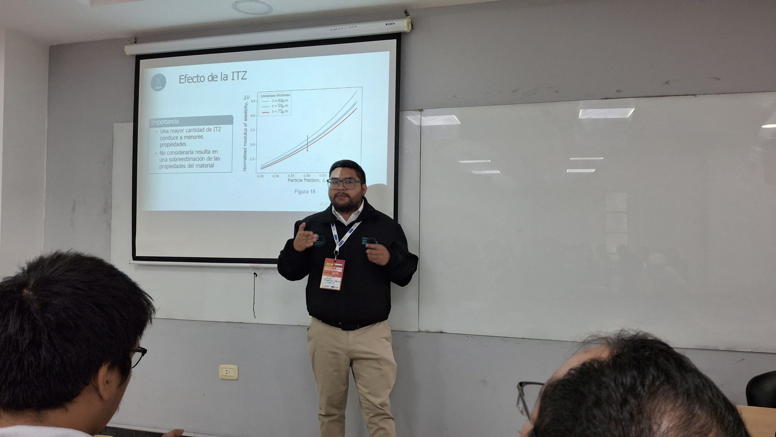 El joven investigador explicó que, pese a su utilidad, este tipo de hormigón enfrenta desafíos relevantes, como su menor resistencia mecánica y la escasez de modelos que permitan predecir adecuadamente sus propiedades. Su estudio busca estimar estas propiedades mediante métodos de homogeneización analítica, incorporando explícitamente en el análisis la presencia de cavidades y agregados en la microestructura del material. Este enfoque, señaló, permite avanzar hacia una comprensión más precisa y contribuir a la optimización de su desempeño mecánico.